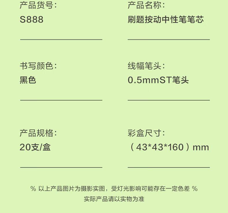 商品标题:得力S888刷题速干按动笔芯0.5mmST头(黑)(支)