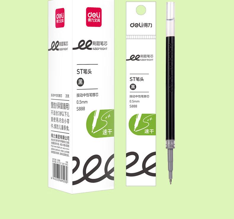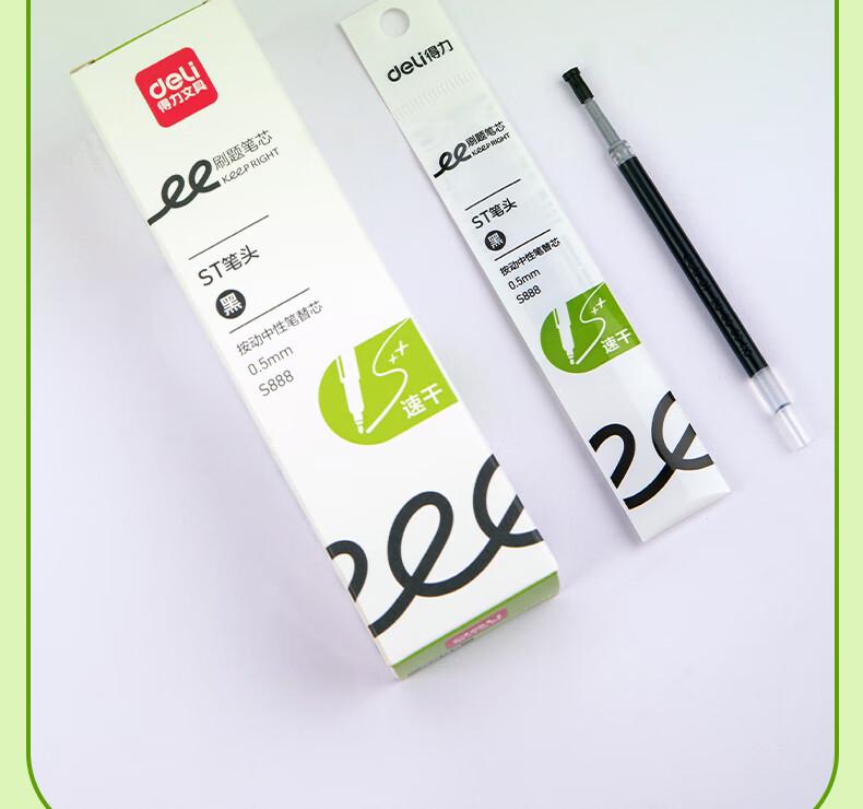 得力S888刷题速干按动笔芯0.5mmST头(黑)(支)