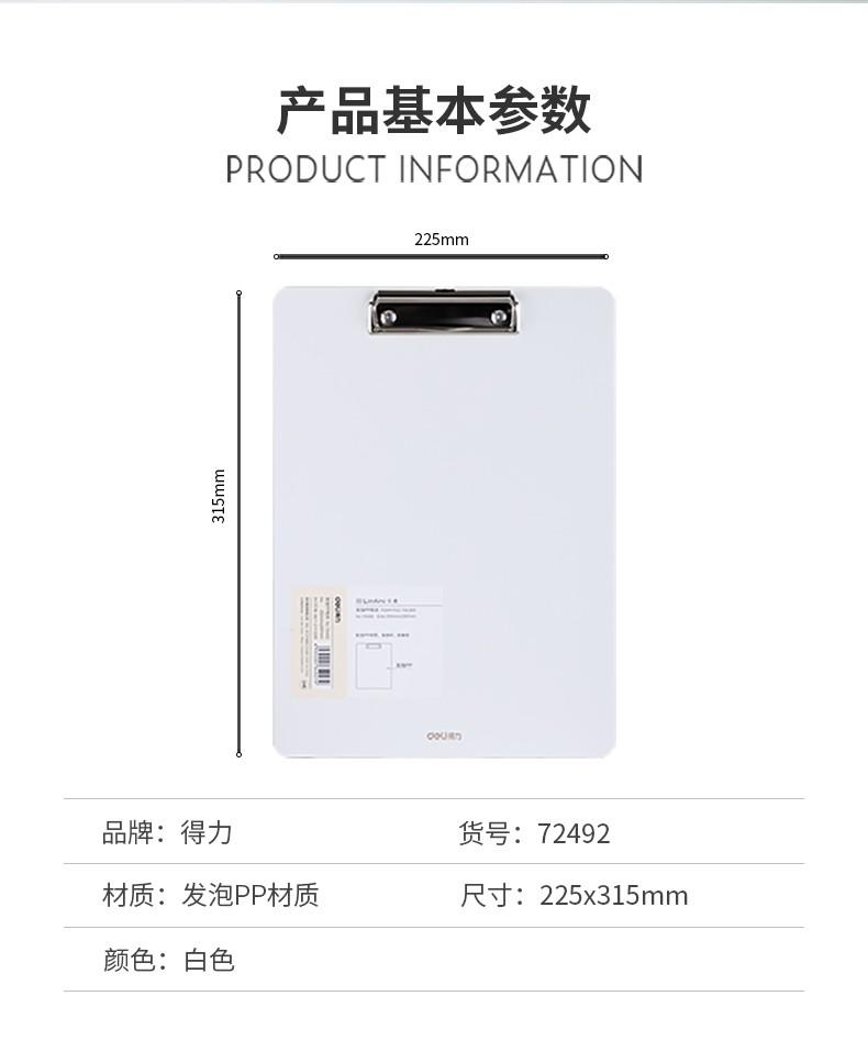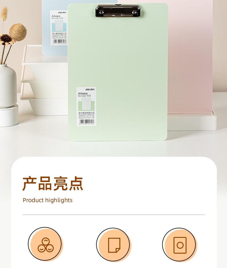 得力72492板夹 A4 315*225mm(单位:个)浅蓝