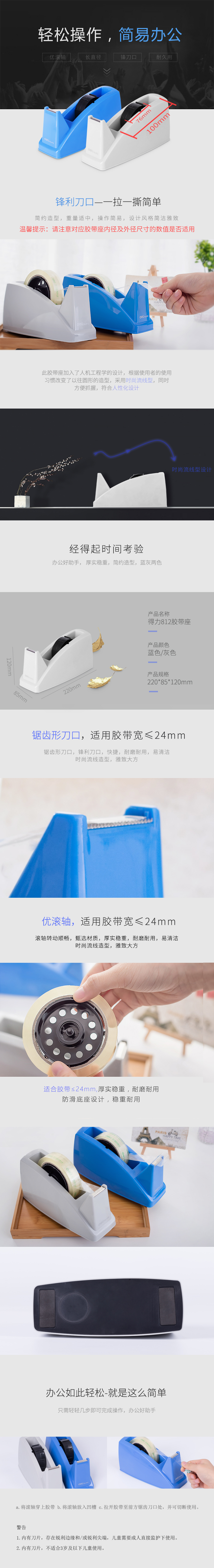 得力812胶带座220*85*120mm(蓝色)(单位:只)