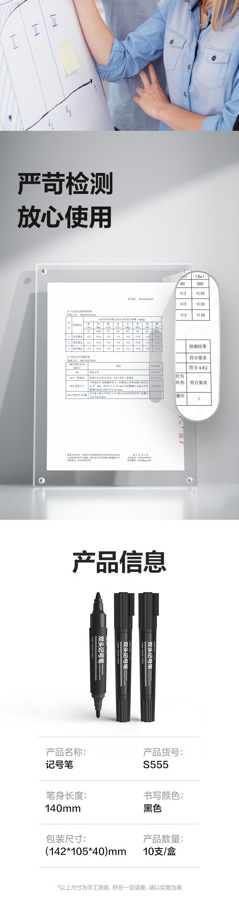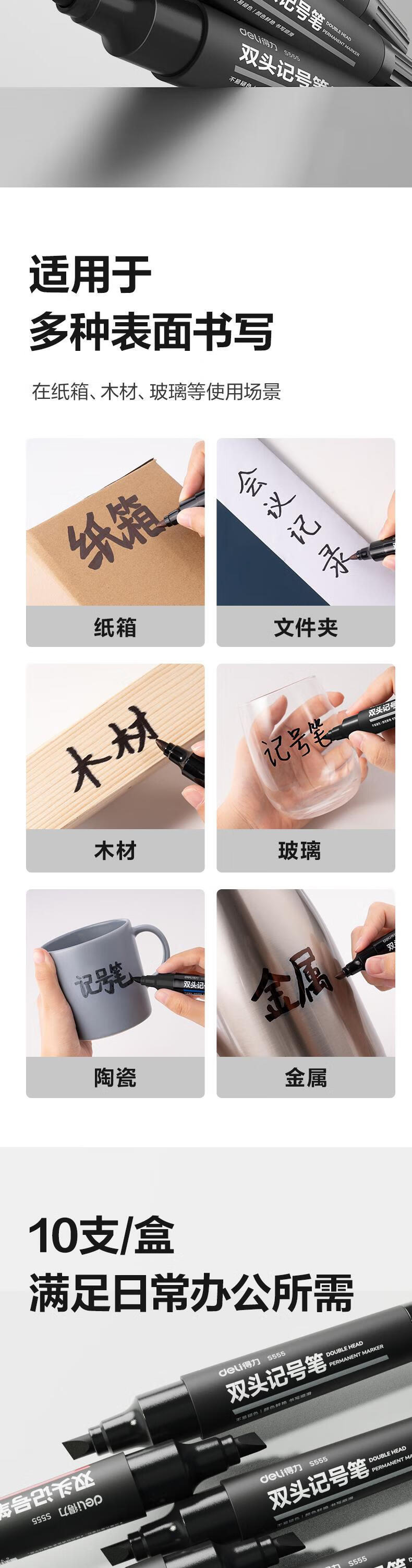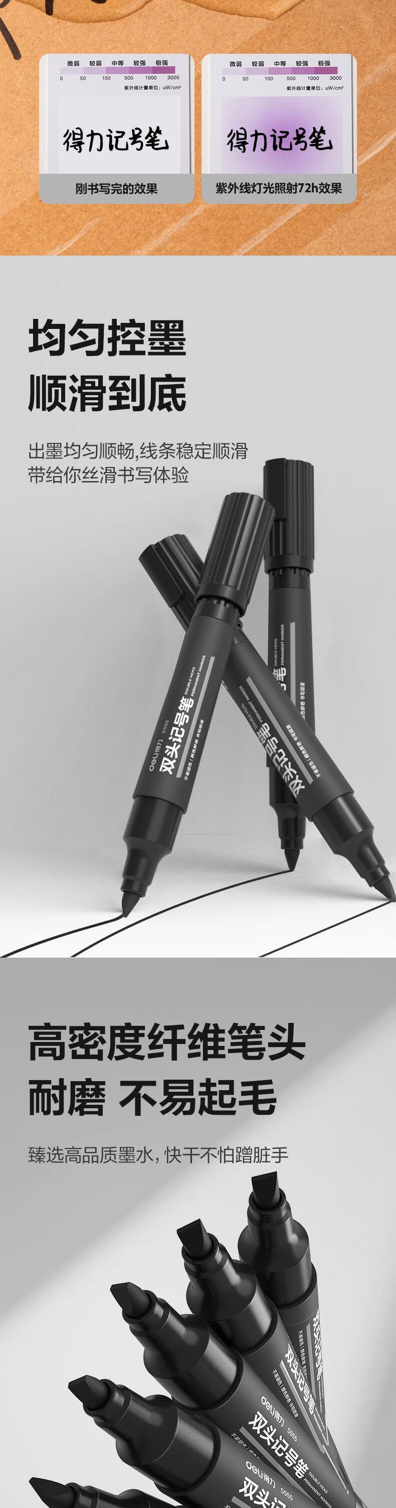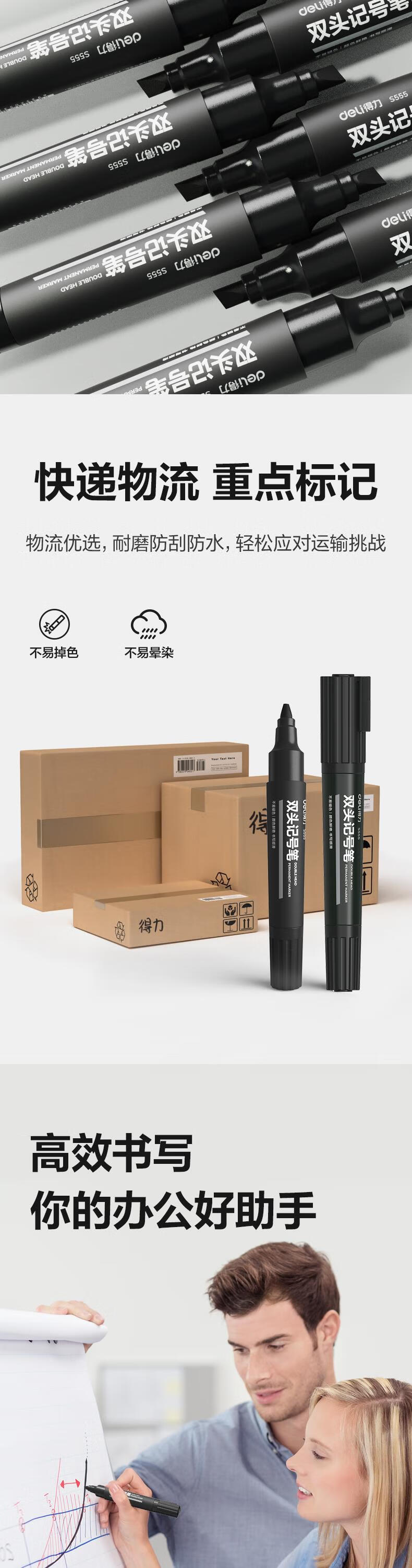 商品标题:得力 S555 大双头记号笔 1.5-6mm 10支/盒 (单位:支) 黑色