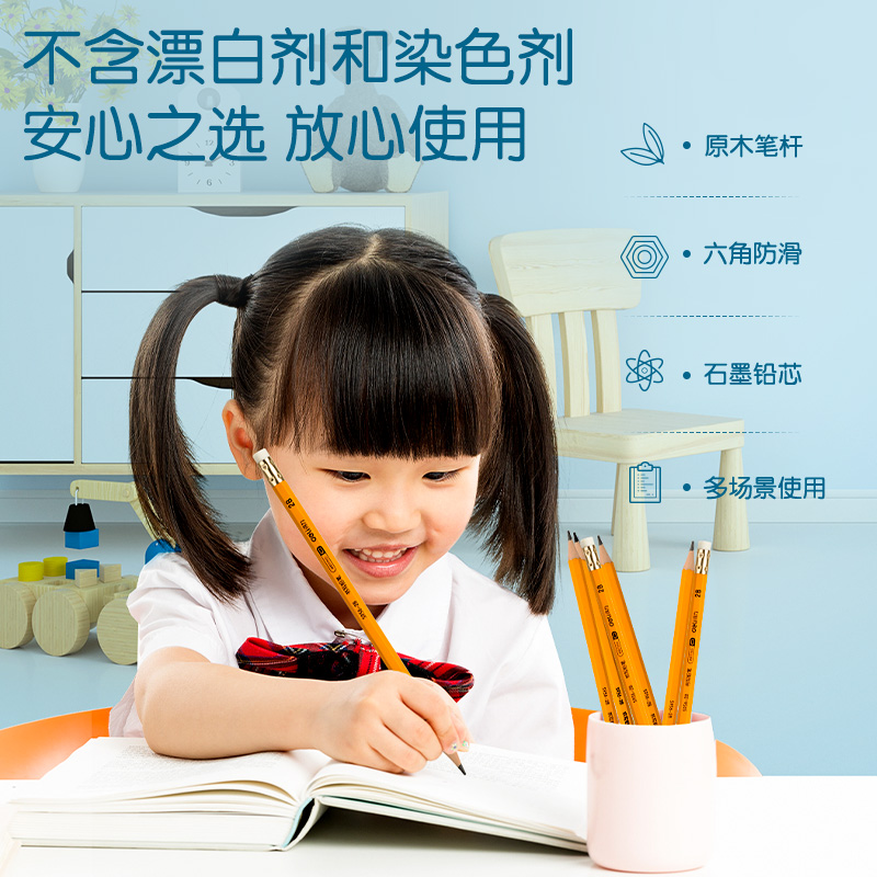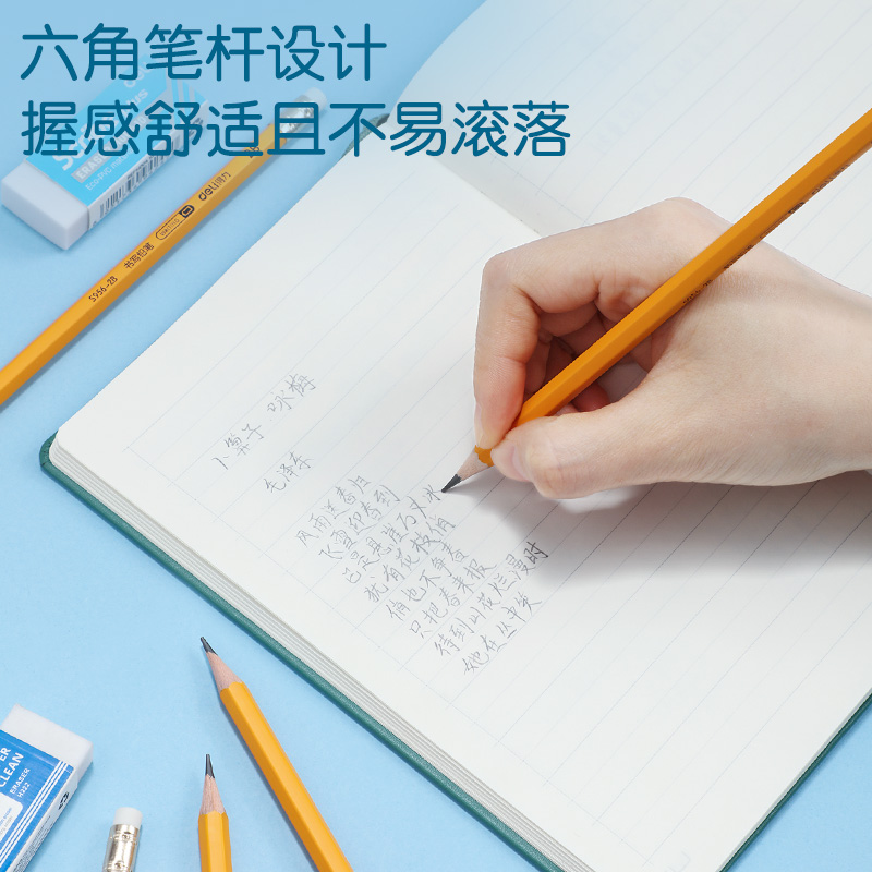 商品标题:得力S956-2B_黄杆办公皮头2B铅笔(黄)(12支/盒)