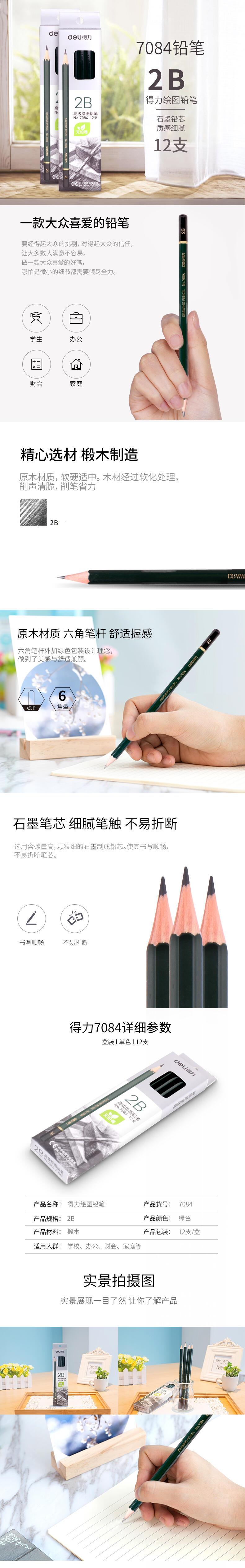 得力 7084 铅笔 2B 12支/盒 (单位:盒) 墨绿