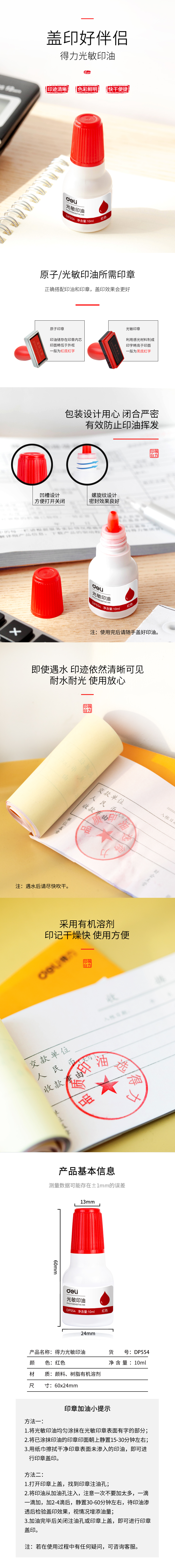 商品标题:得力DP554光敏印油(红)(瓶)