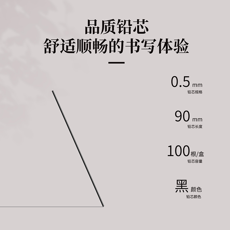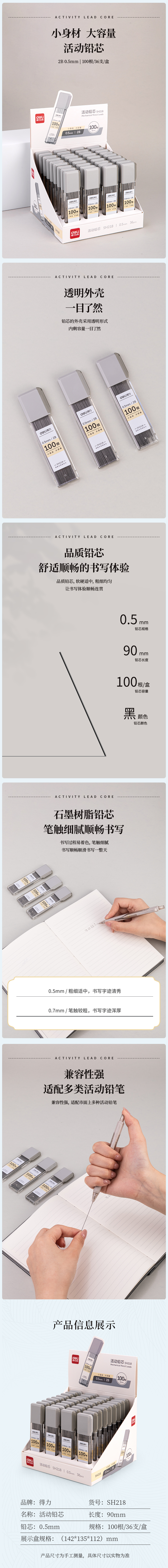 商品标题:得力SH218大容量100根活动铅芯2B0.5-90mm(灰)(支)