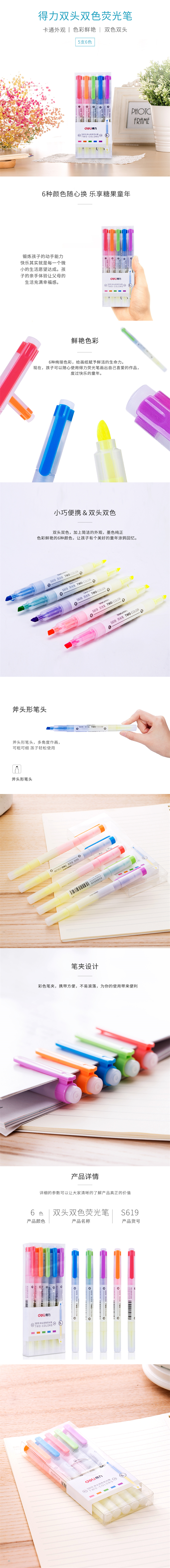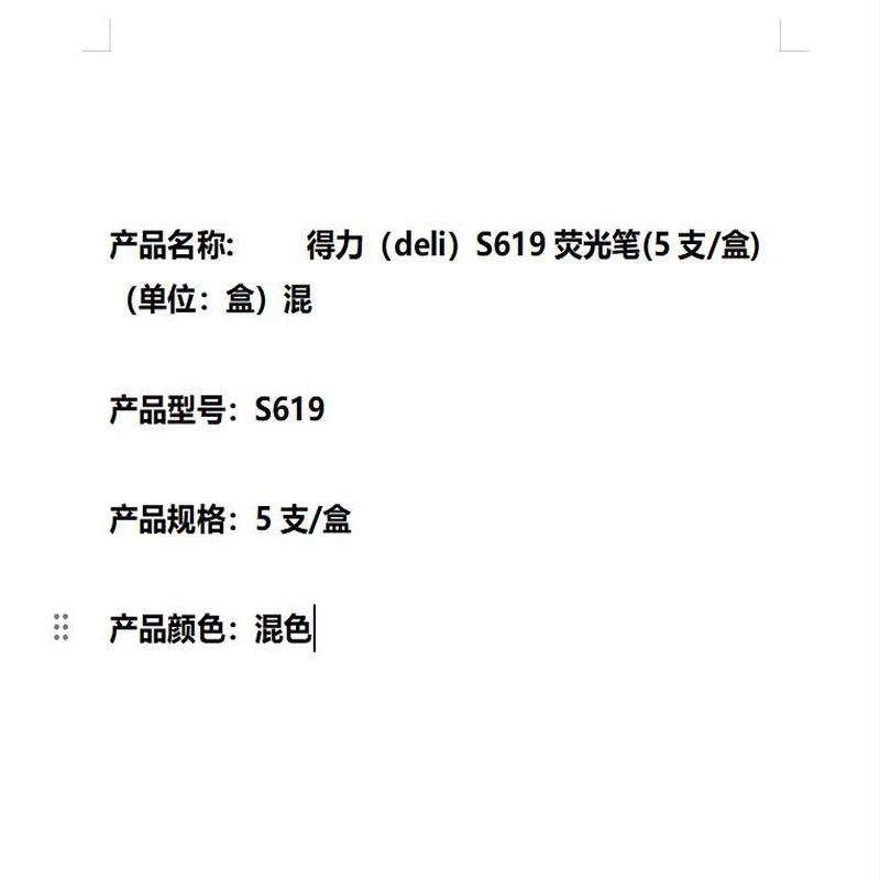 商品名称:得力(deli)S619荧光笔(5支/盒)(单位:盒)混