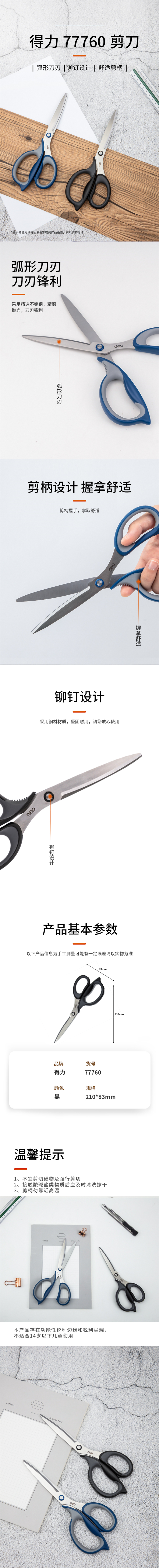 得力(DELI)77760 210mm大号办公 弧形剪片省力剪刀 黑(单位:把)