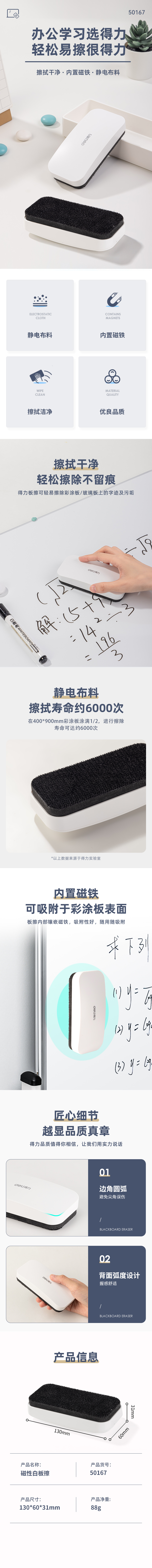 商品标题:得力50167磁性白板擦130*60mm(白色)(块)
