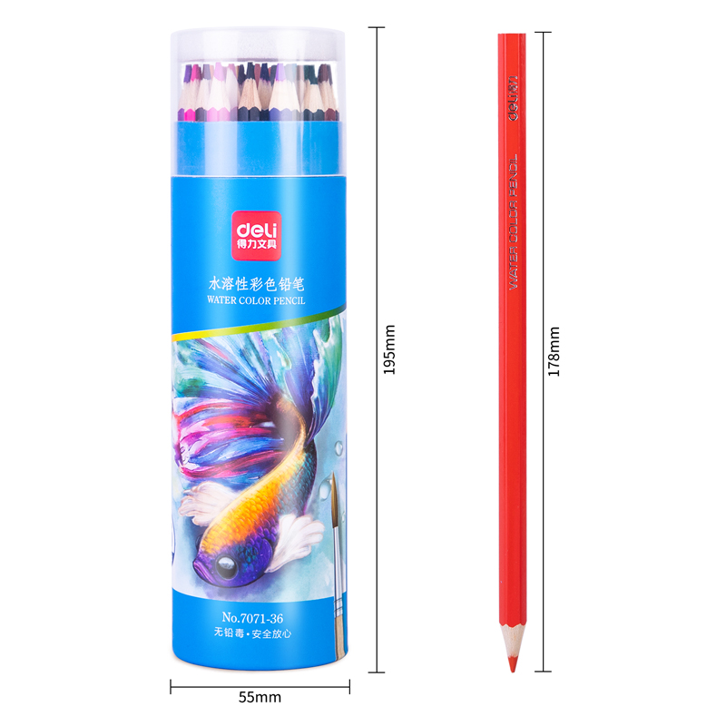 商品标题:得力7071-36_36色六角杆水溶性彩铅(混)(36色/筒)