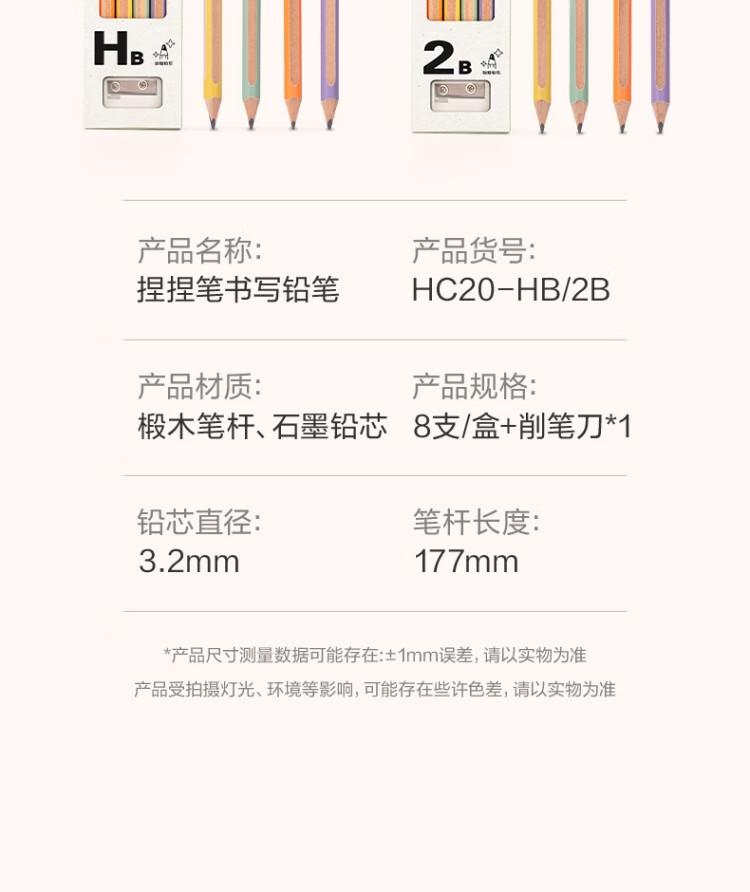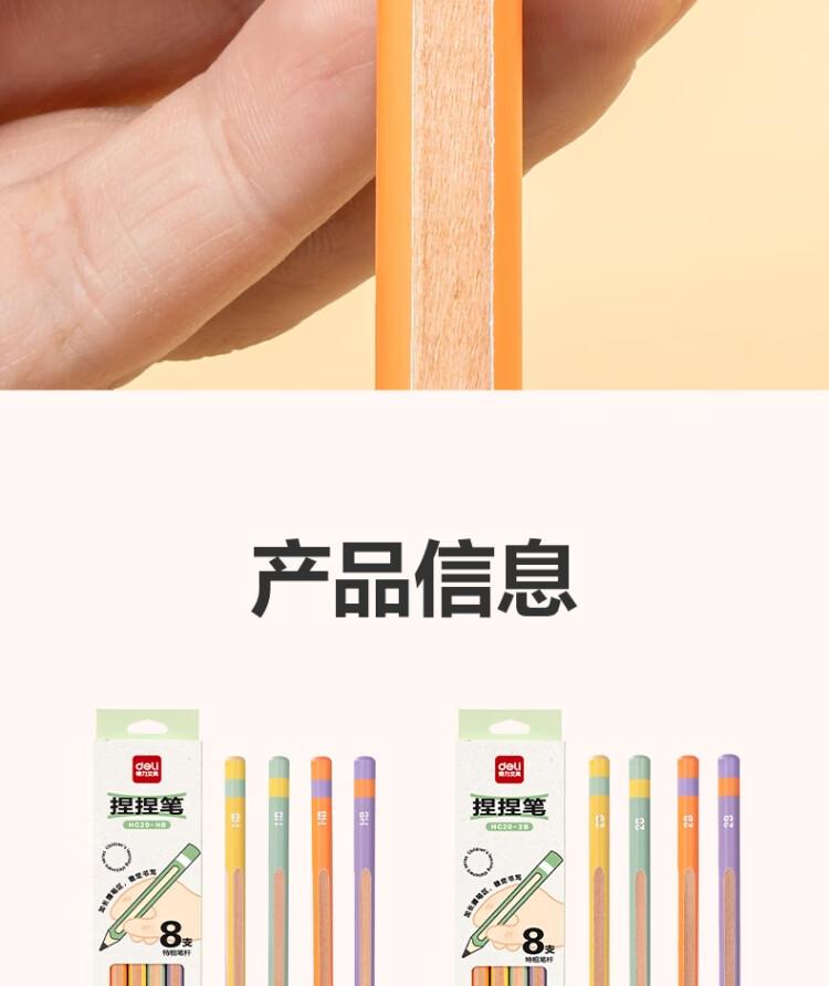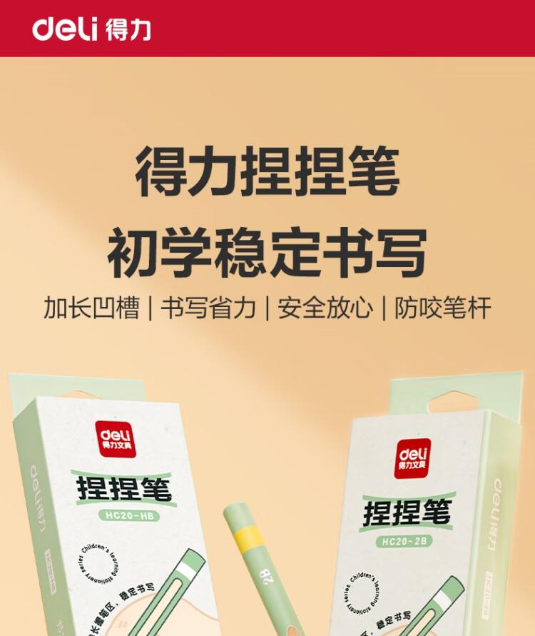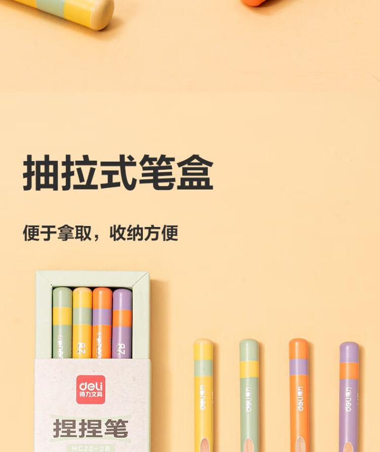 得力HC20-2B特粗杆捏捏笔书写铅笔2B(混)(8支/盒)