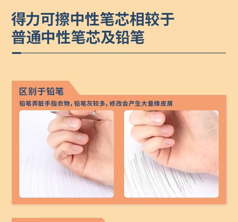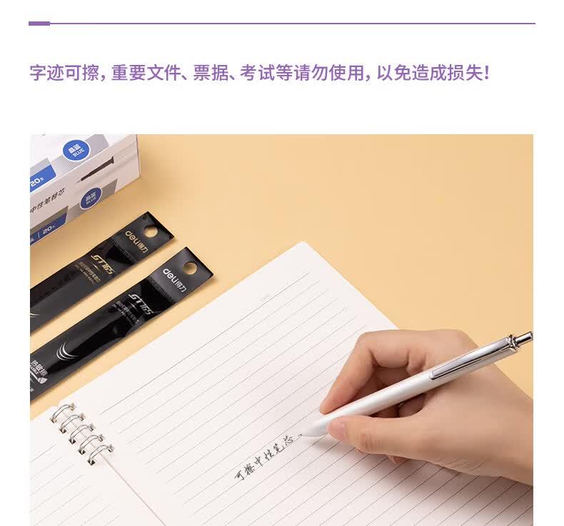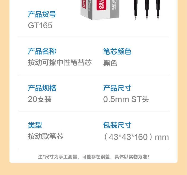 商品标题:得力GT165可擦按动笔芯0.5mmST头(黑)(支)