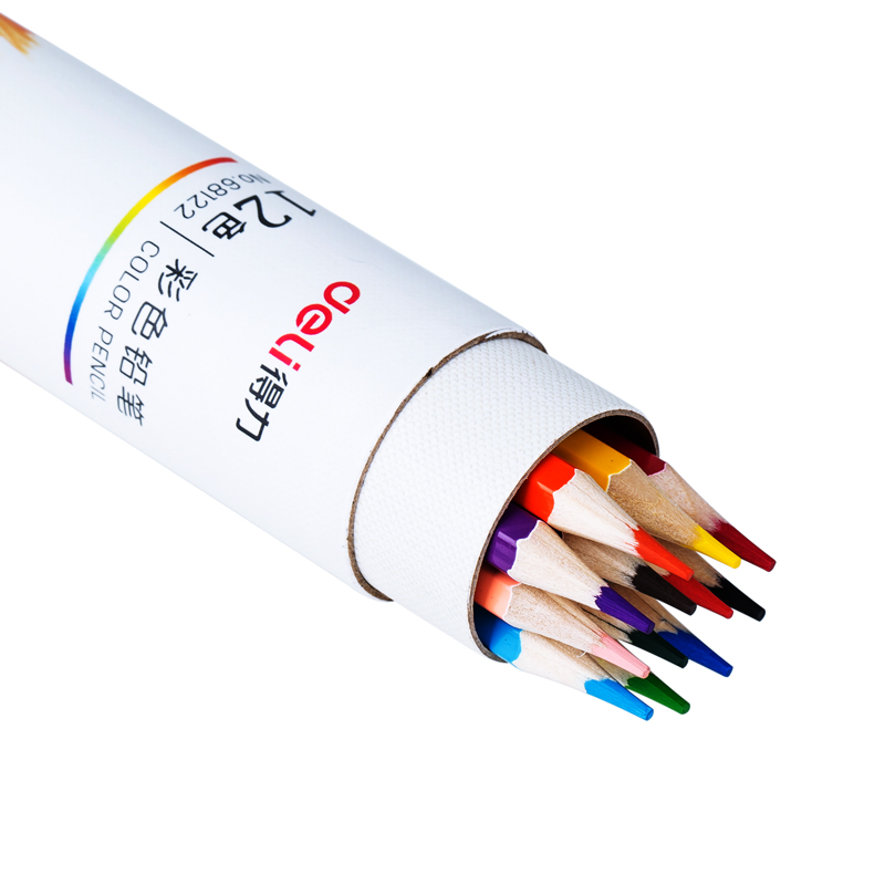 得力68122_12色六角杆彩铅(混)(12色/筒)