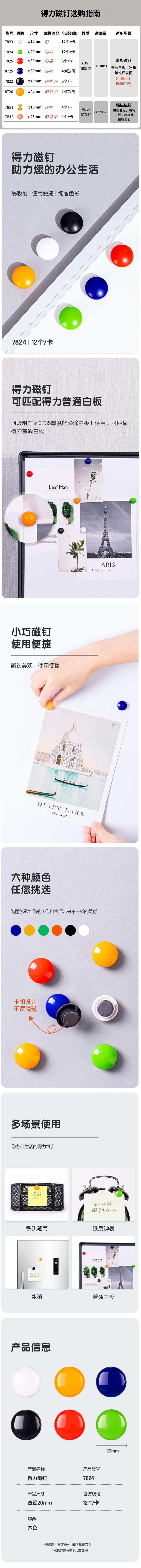 名称:得力7824磁钉φ20mm(混)(12个/卡)