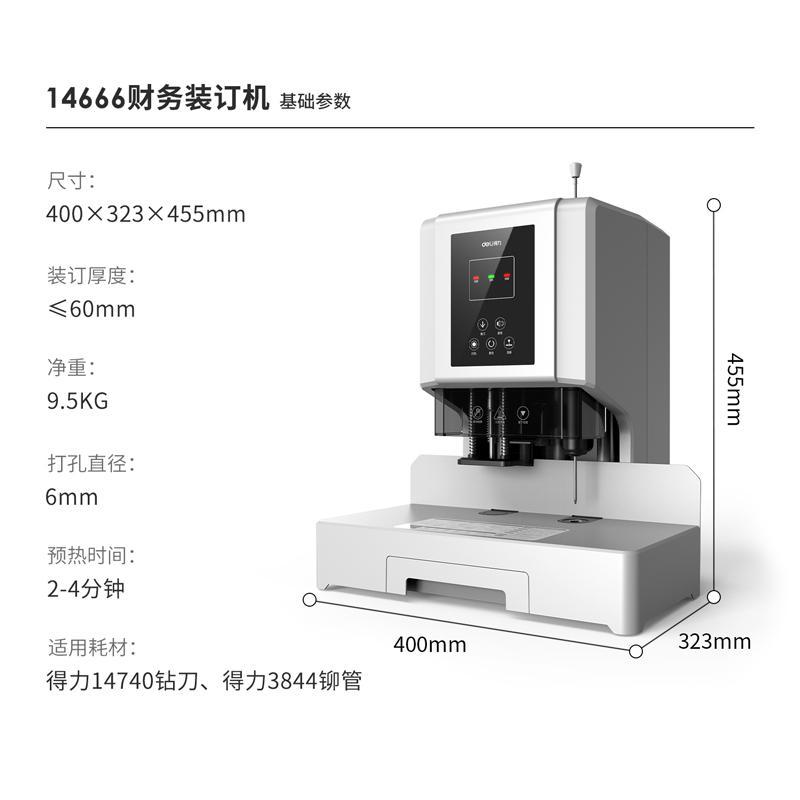 得力(DELI)14666 财务装订机 白色(600页升级款自动热熔铆管装订机 财务凭证打孔机热熔胶管装订机)(台)