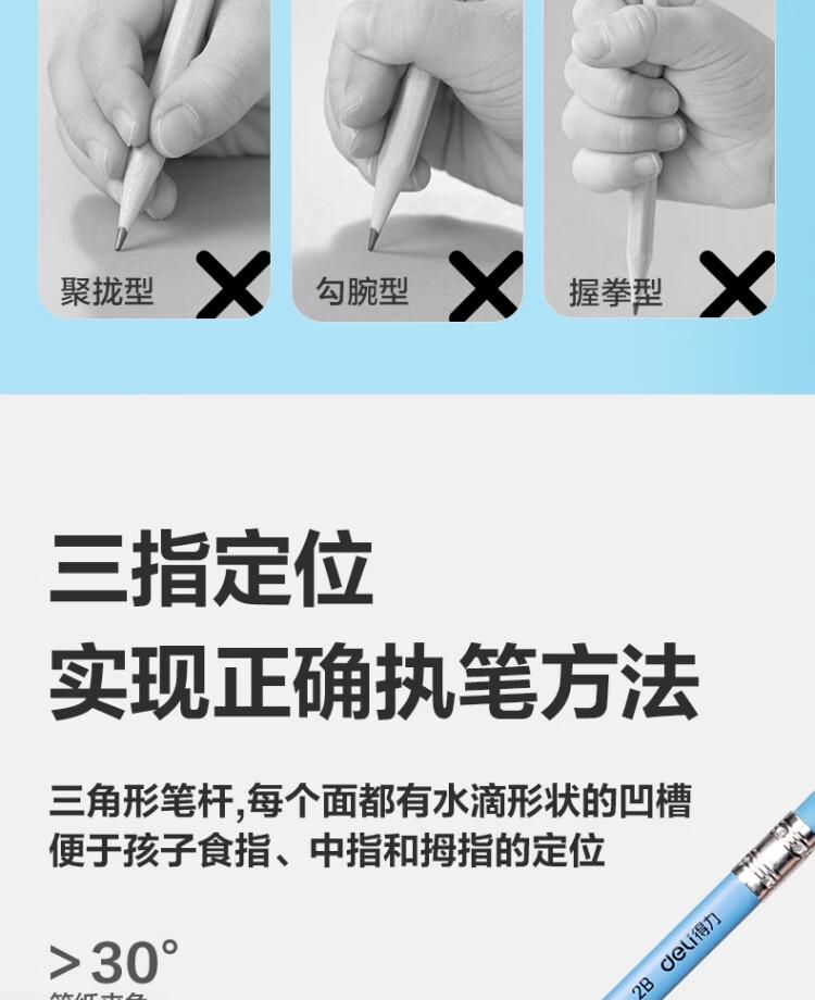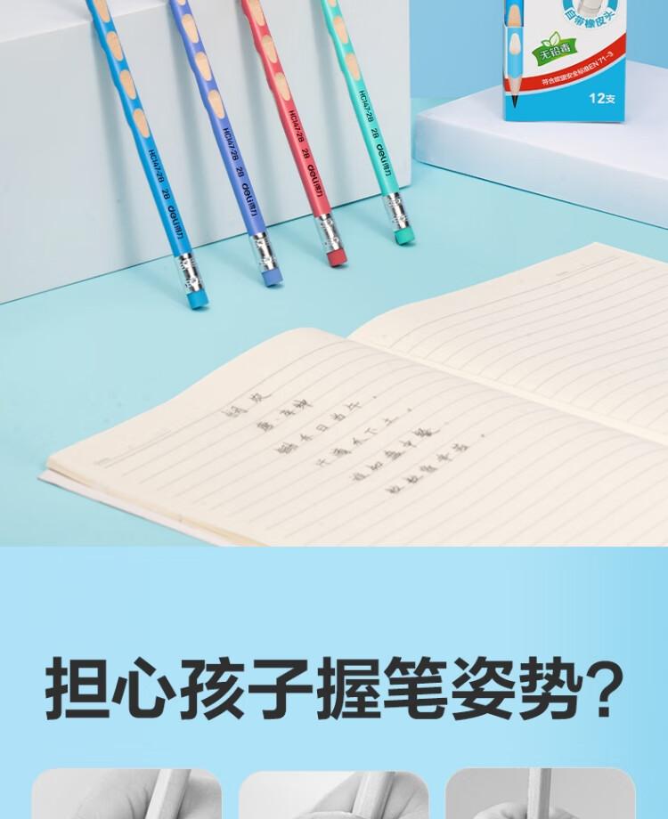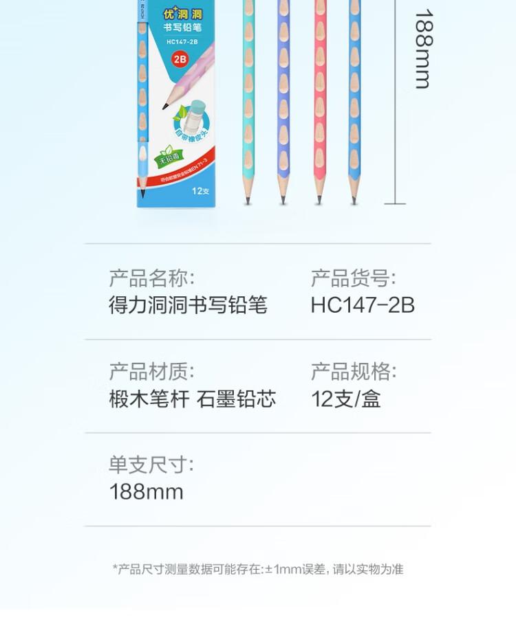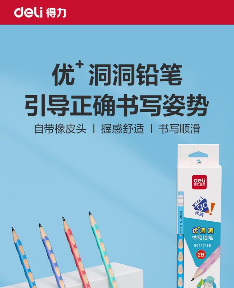 得力HC147-2B优+洞洞书写铅笔2B(混)(12支/盒)