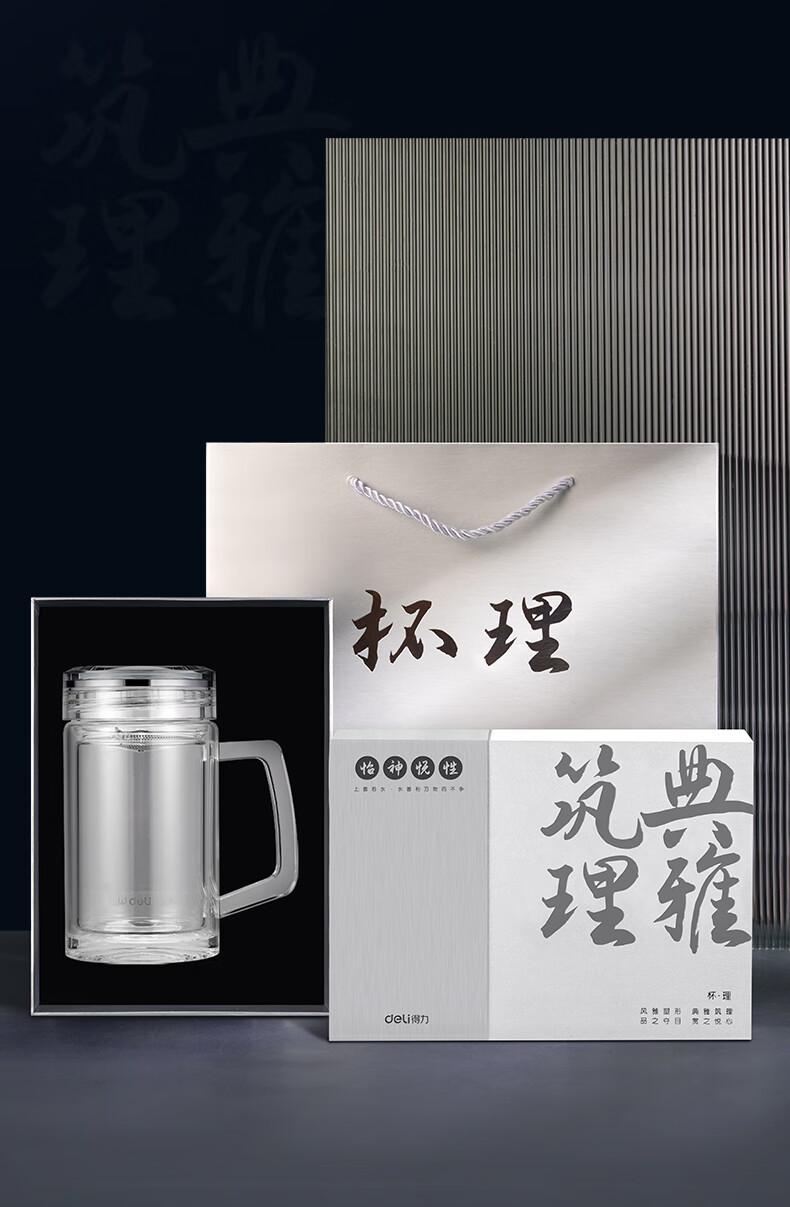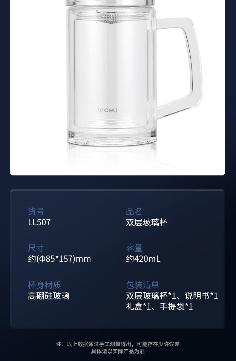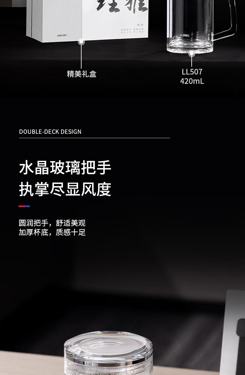 商品标题:得力LL507双层玻璃杯(420mL)(商务礼盒)(透明)(个)