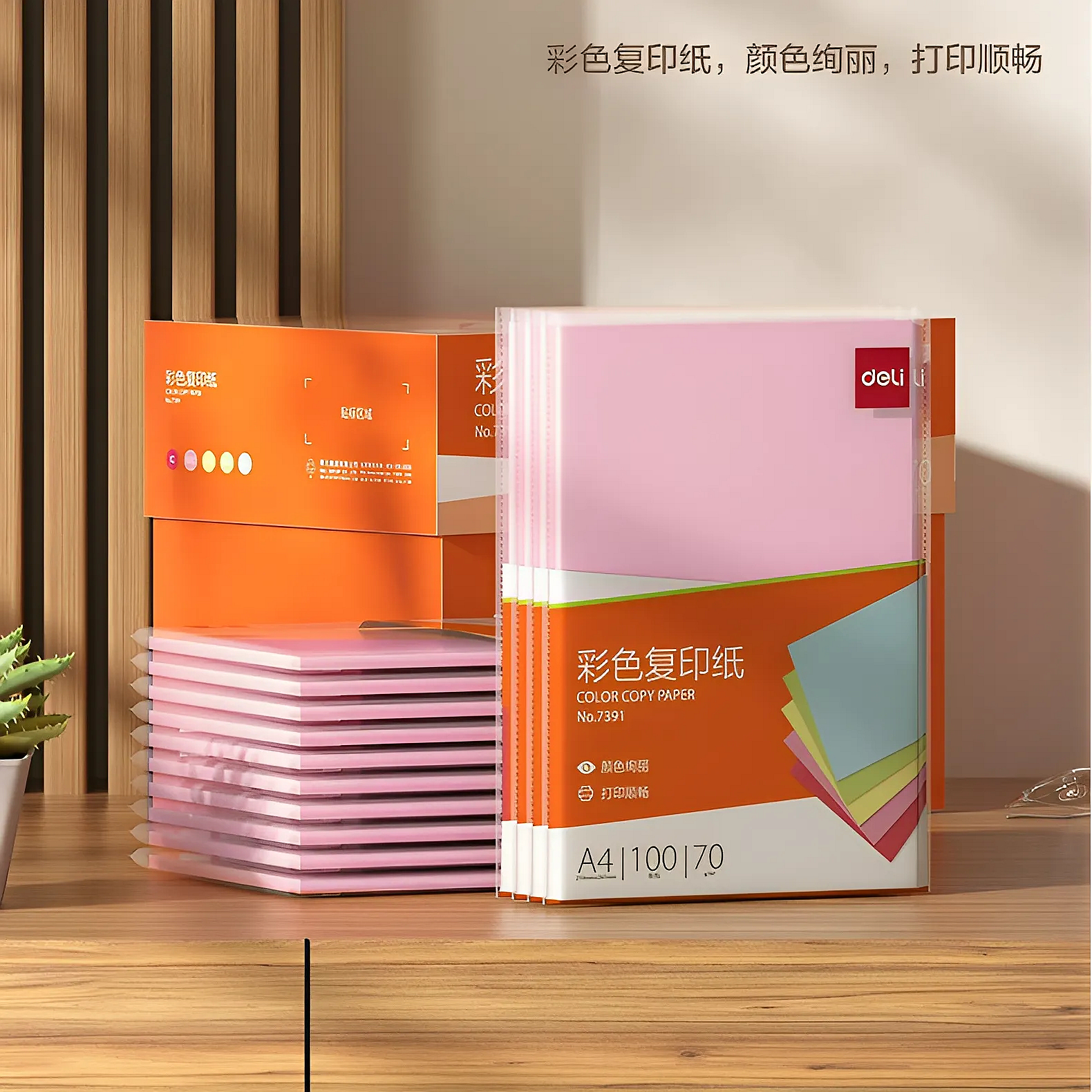 商品标题:得力7391彩色复印纸70g-A4-100页/包 (浅红)(包)