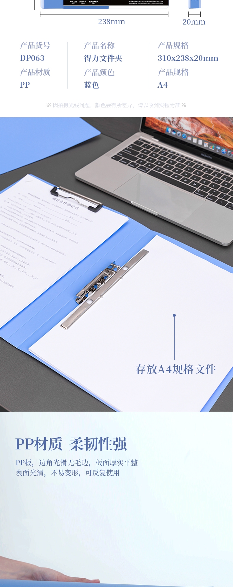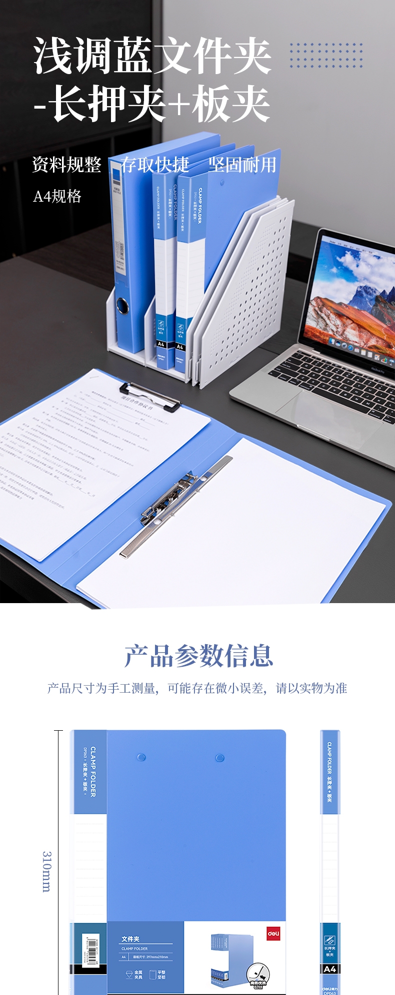 商品标题:得力DP063长押夹+板夹(天蓝)(个)
