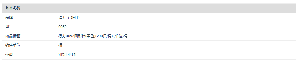 商品标题:得力 0052 回形针 3# (单位:桶) 黑色