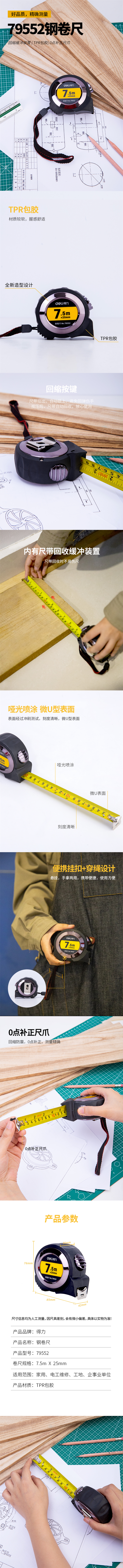 商品标题:得力 79552 钢卷尺 7.5米 (单位:把) 灰
