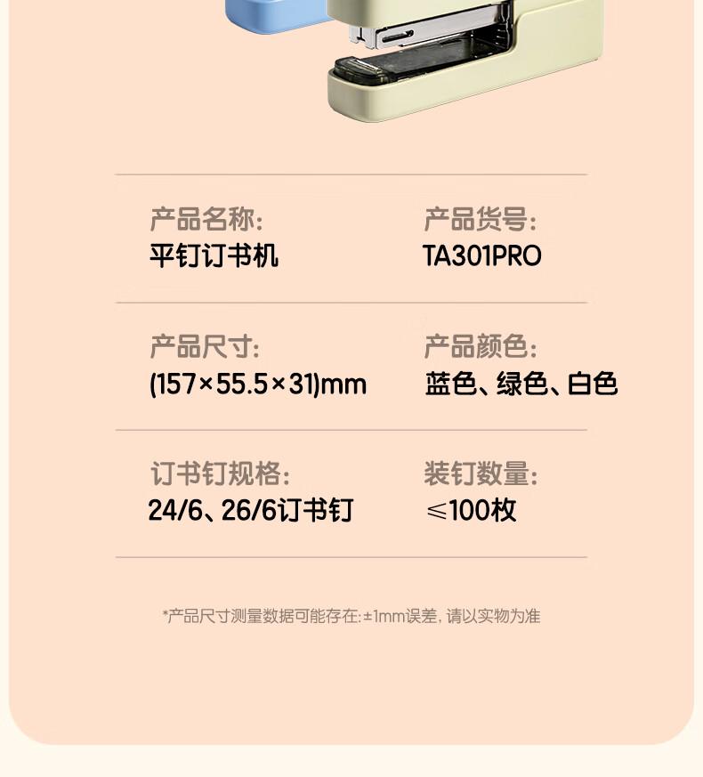 商品标题:得力TA301PRO桌面订书机(灰色)(盒)