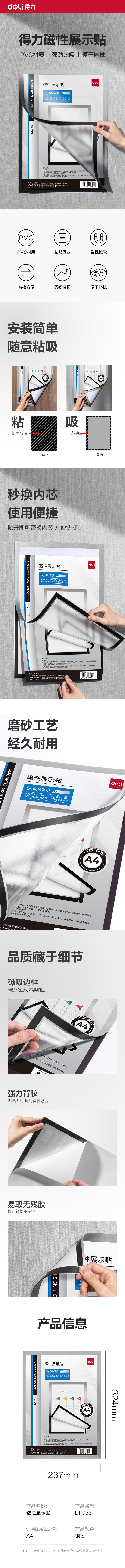商品标题:得力DP733磁性展示贴210*297mm(银)(个)