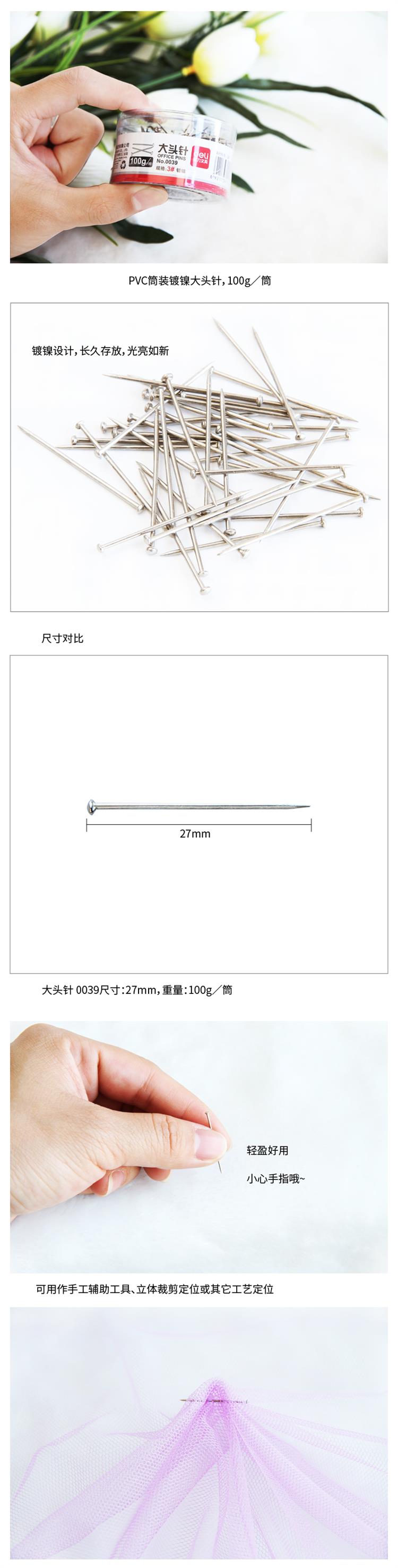 商品标题:得力 0039 大头针 100克/筒 (单位:筒)