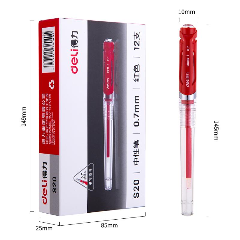 得力S20中性笔0.7mm子弹头(单位:支)红色