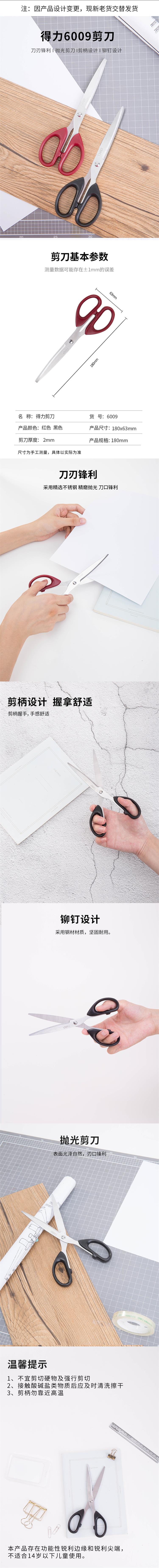 得力6009 180mm(7‘)剪刀(红)(单位:把)