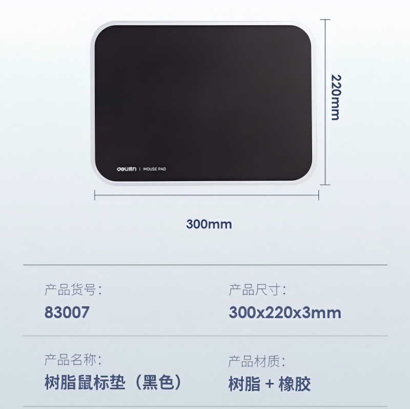 得力83007 鼠标垫 耐磨树脂 300*220mm 黑色(块)
