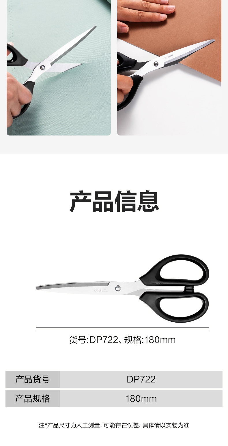 商品标题:得力DP722办公剪刀180mm(黑)(卡)