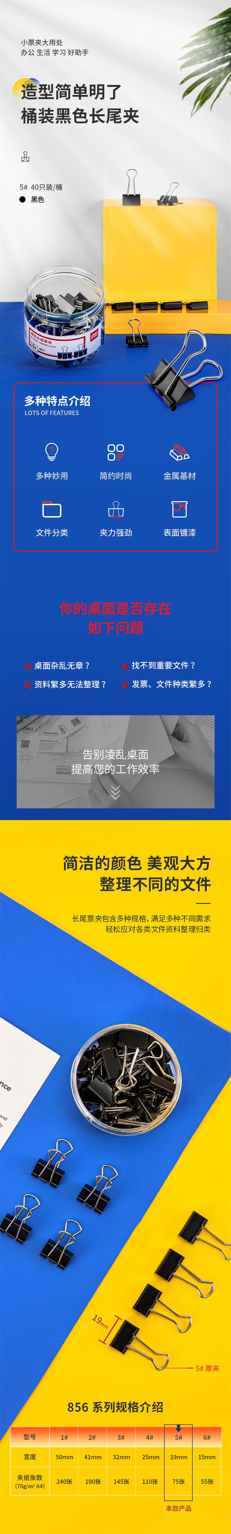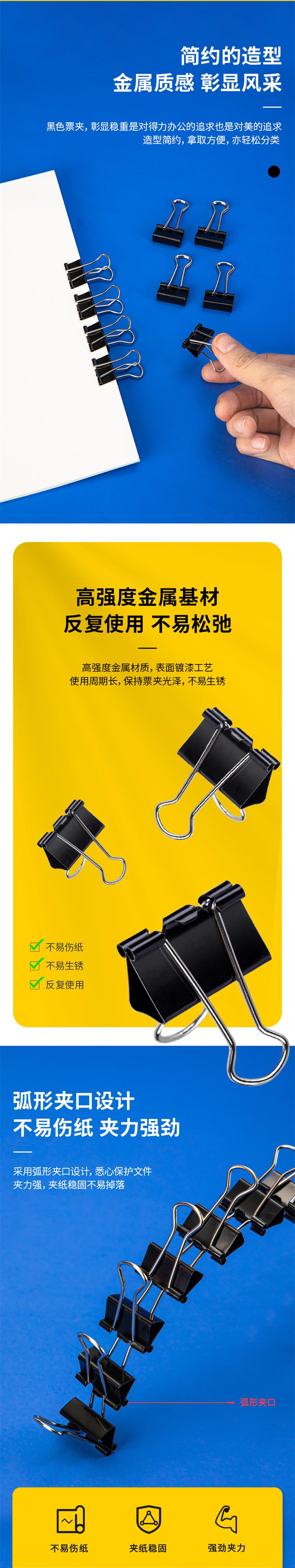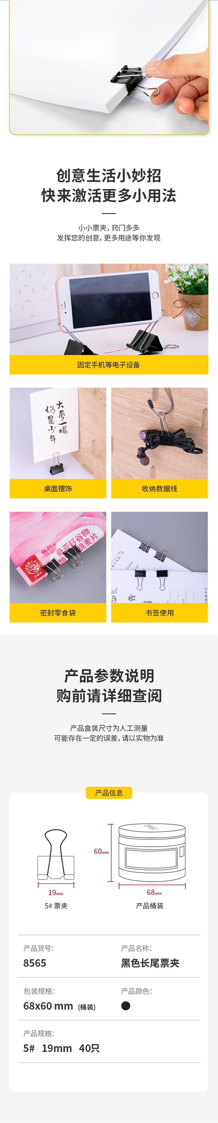 商品标题:得力 8565 长尾夹 19mm 40只/筒 (单位:筒) 黑