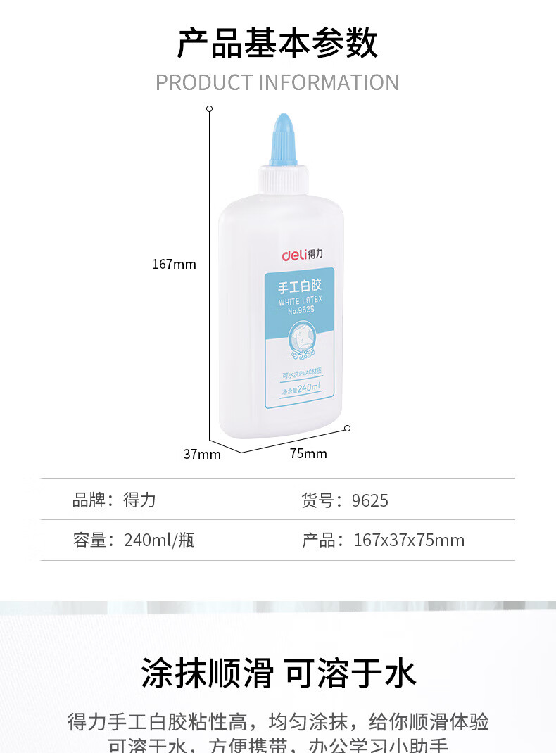 得力(deli)9625白胶240ml/瓶(单位:瓶)白色