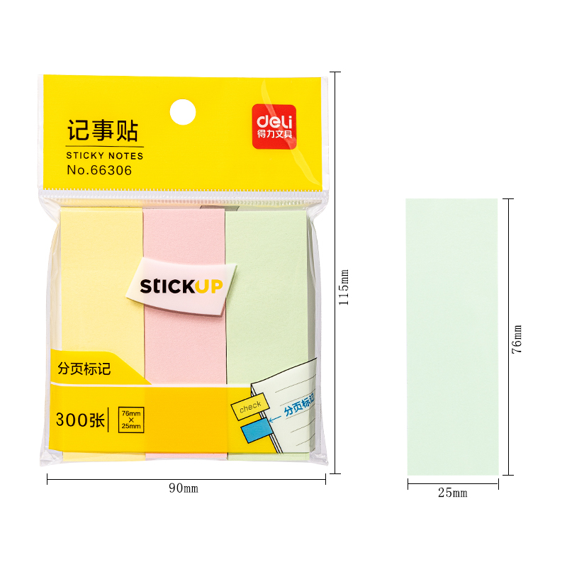 得力66306学生百事贴 76mm x 25mm(单位:袋)混色