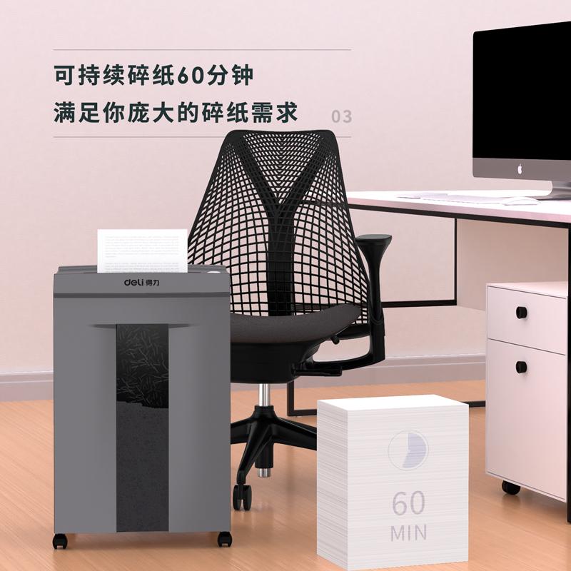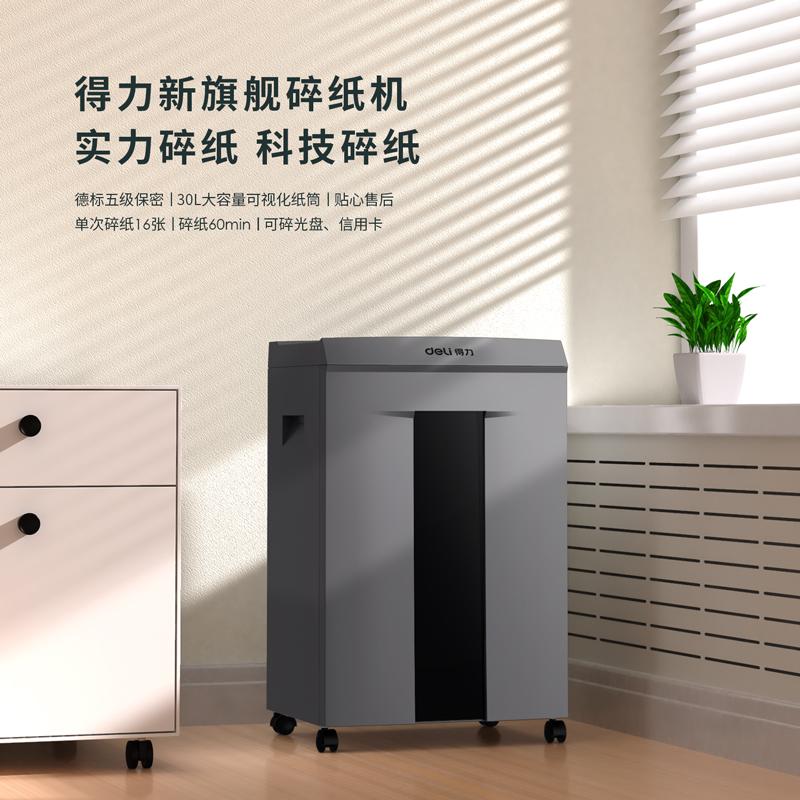 得力9906碎纸机(金属灰)5级保密 单次16张 30L可视容量 60分钟碎纸时间