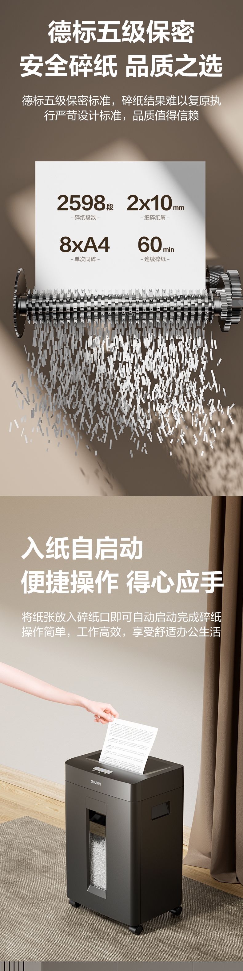 商品标题:得力GA666P碎纸机-商务碎纸机(黑色)(台) 5级保密 单次8张 23L可视容量 60分钟碎纸时间(黑色)
