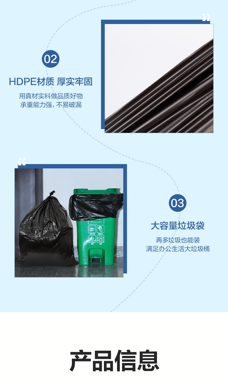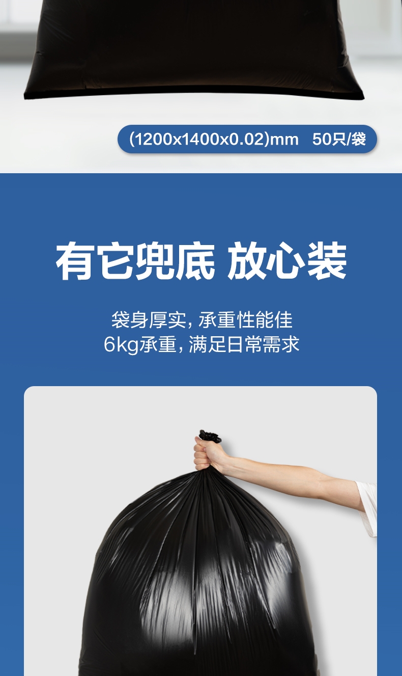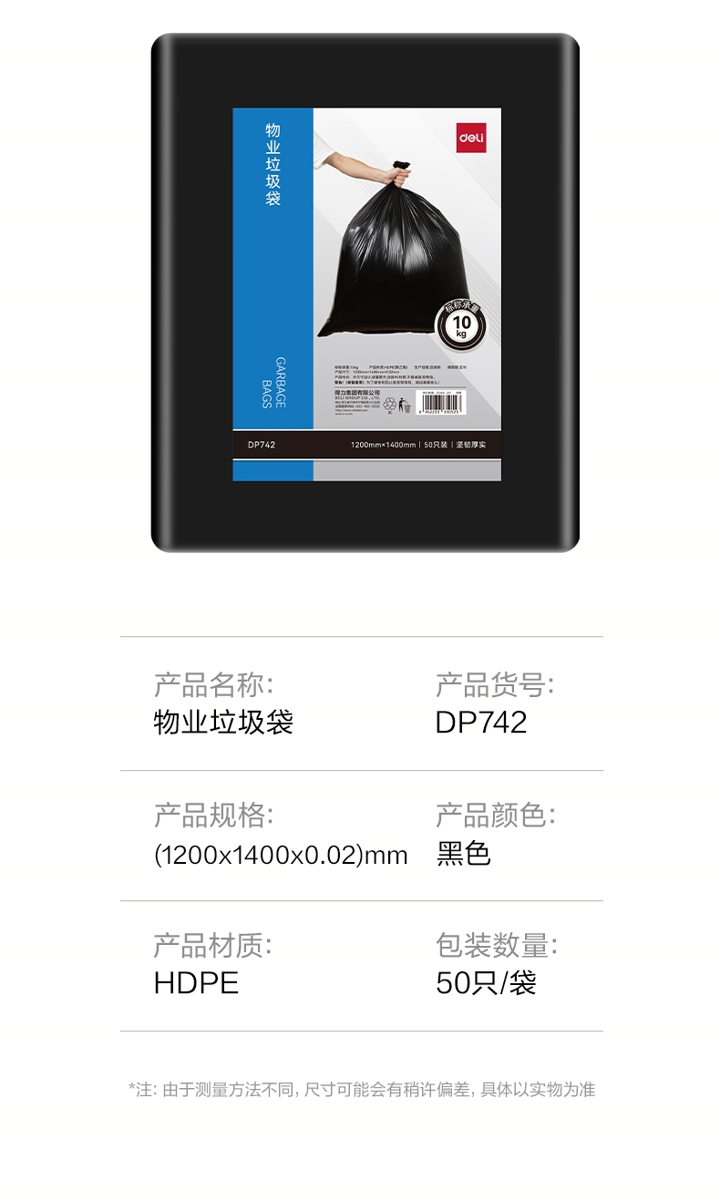 商品标题:得力DP742垃圾袋120x140cm(黑)(50只/包)