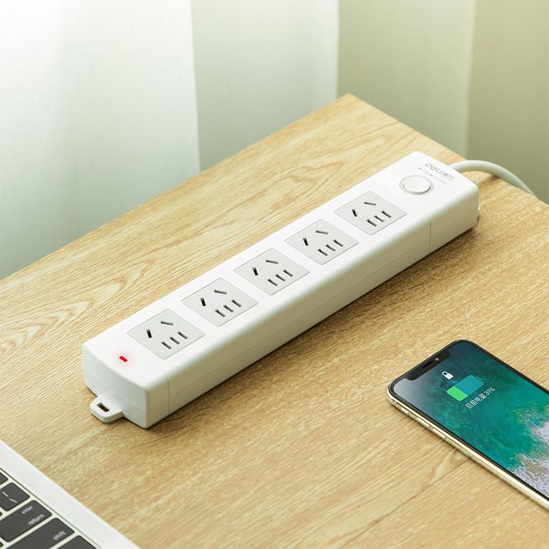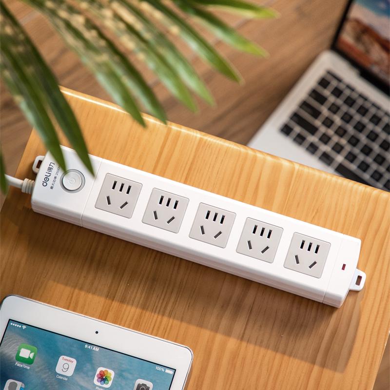 得力18204插座 5组总控 3米 白色(只)