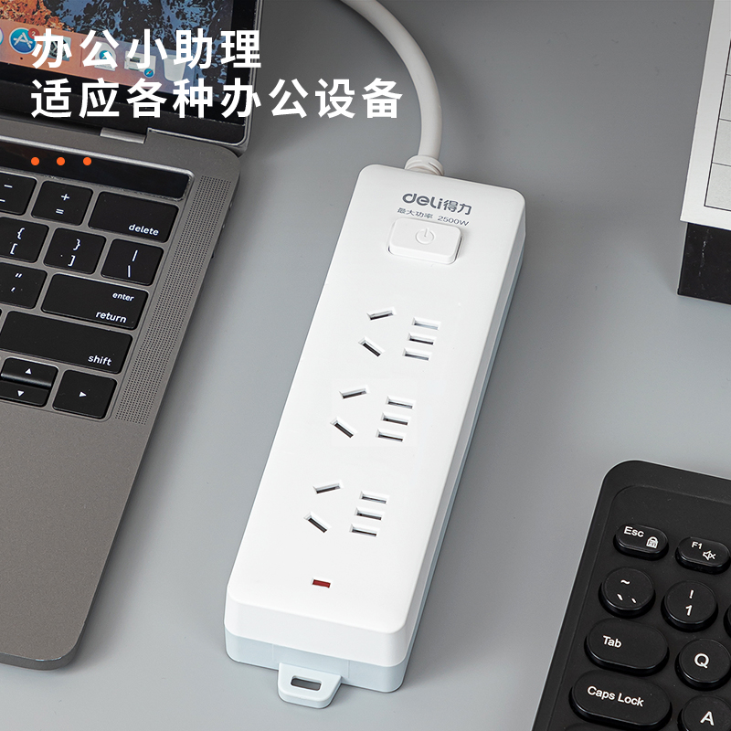 商品标题:得力18174(1.8)延长线插座 3组 1.8米 (白)(个)