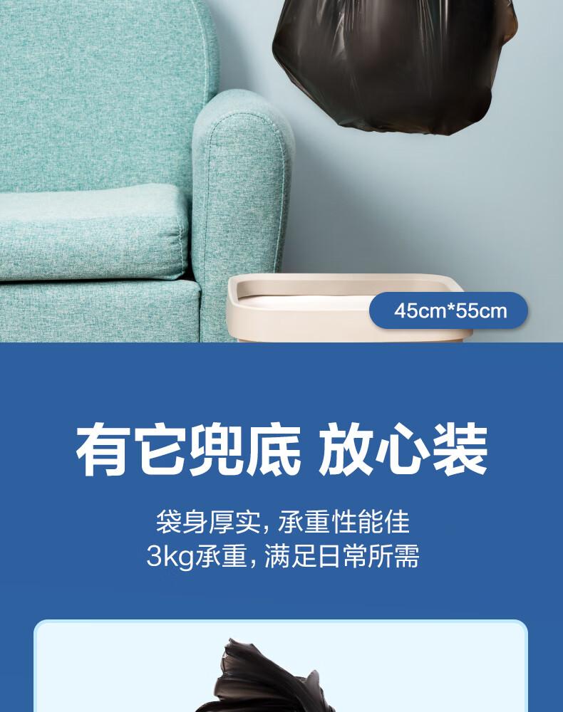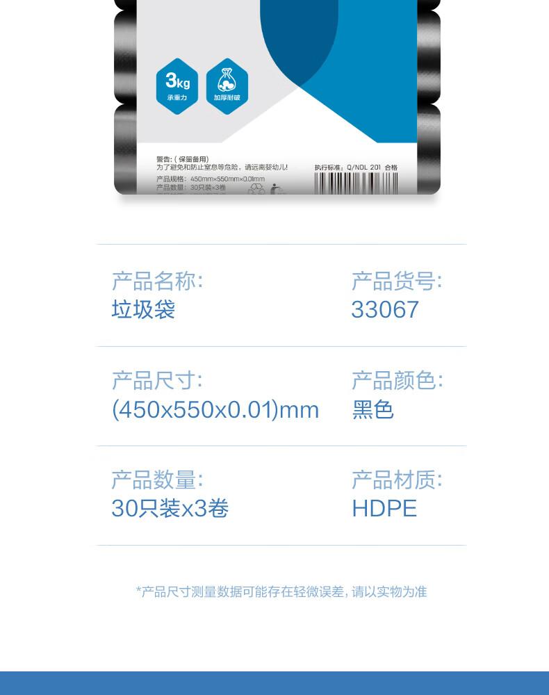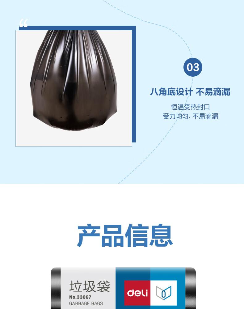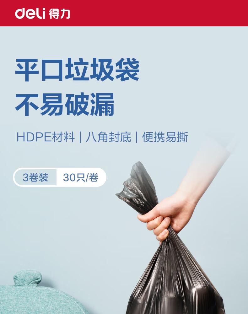 得力33067垃圾袋45×55cm八角底(黑)3卷/套(单位:套)