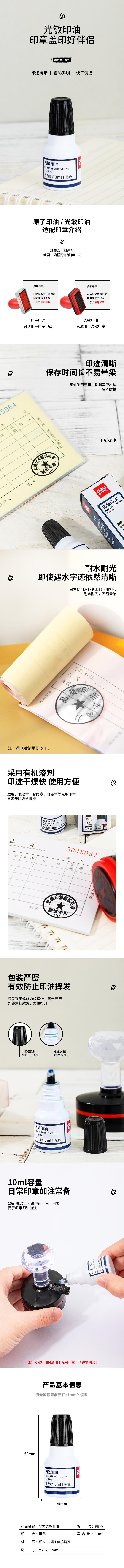 得力光敏印油9879(黑色)(瓶)