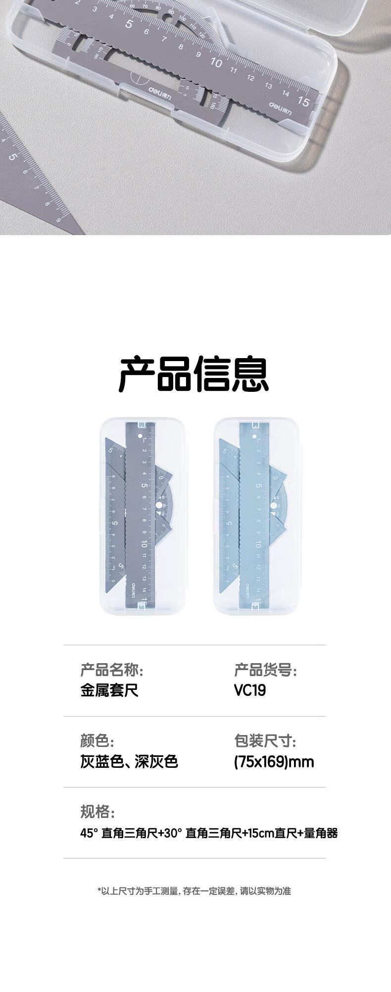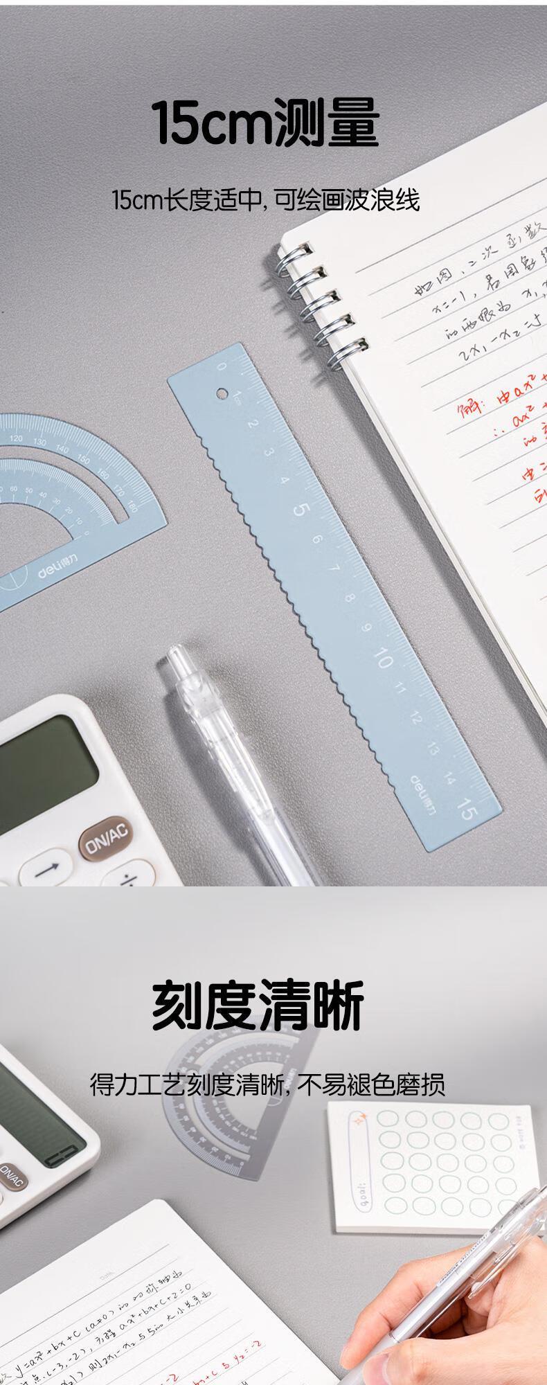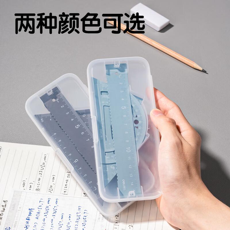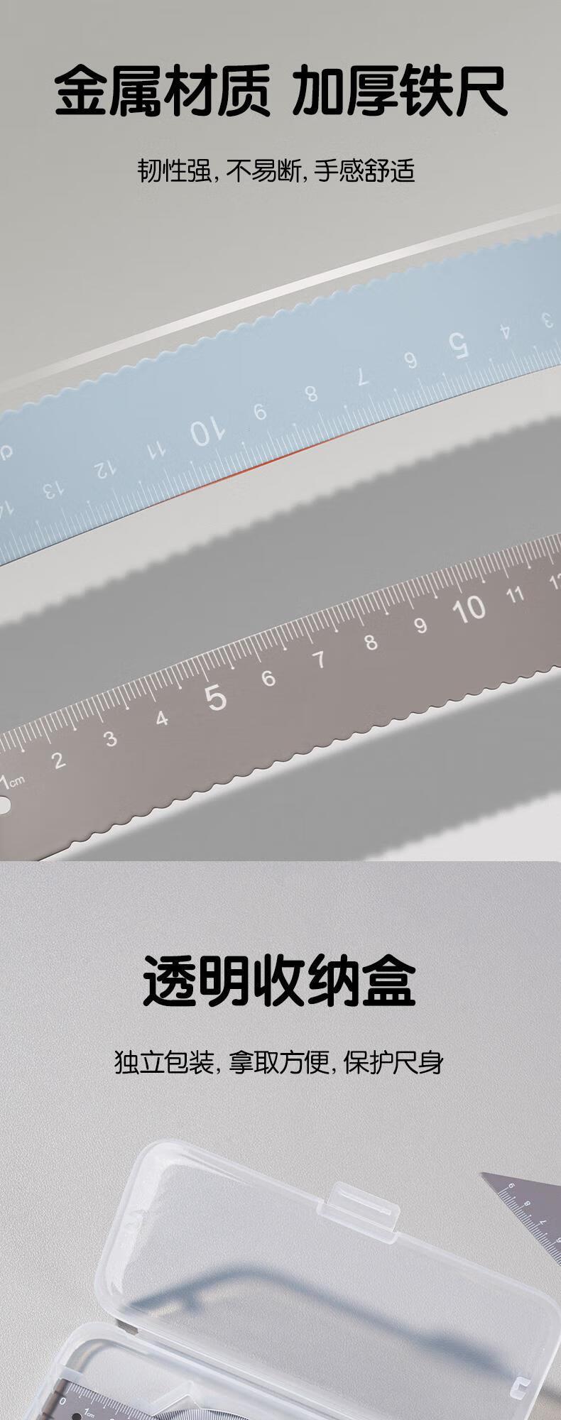 规格:45°直角三角尺+30°直角三角尺+15cm直尺+量角器