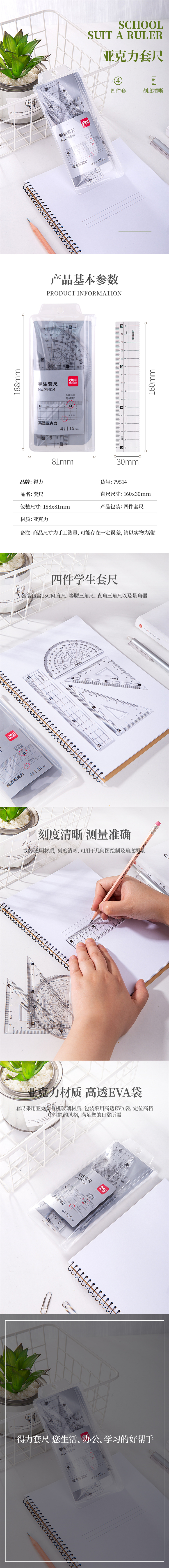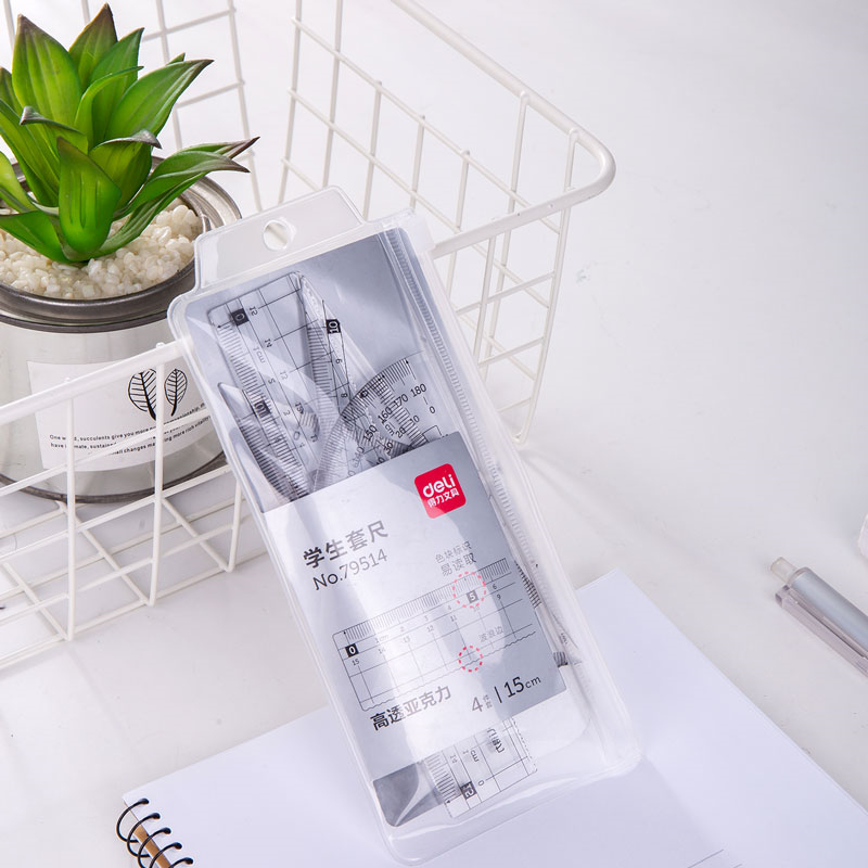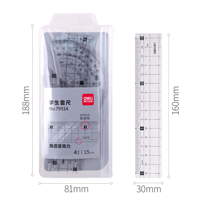 得力79514学生套尺188*81mm(透明本色)(单位:套)