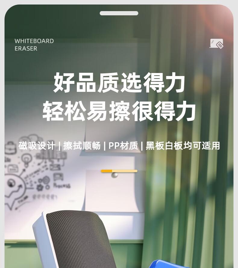 商品标题:得力7837Pro白板擦114.1*51.2*43mm(灰)(只)
