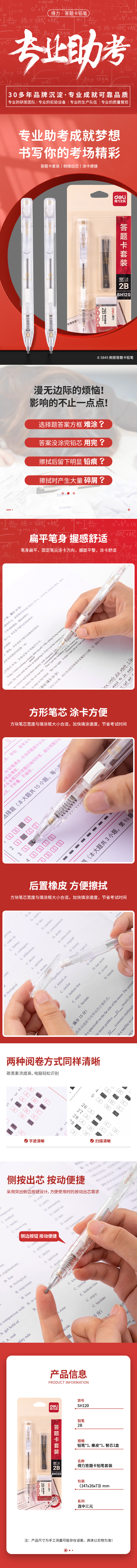 得力连中三元SH120侧按答题卡铅笔套装2B(白)(套)