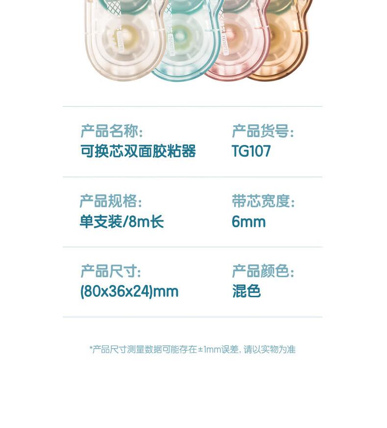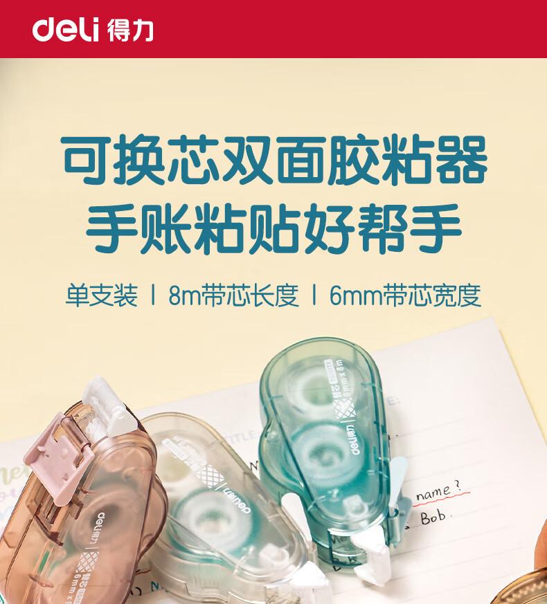 得力TG107可换芯双面胶粘器_6mm*8m(混)(个)
