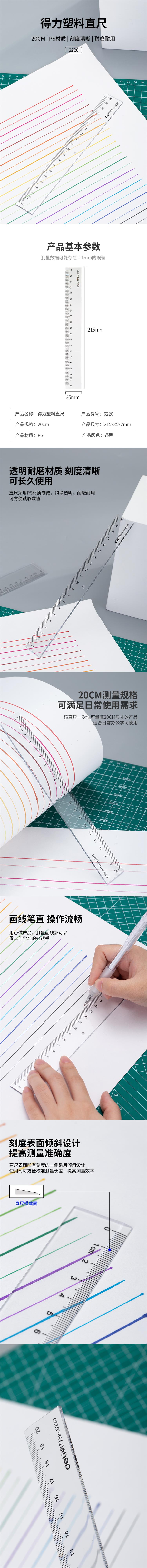 商品标题:得力 6220 20cm 直尺 (单位:只) 透明