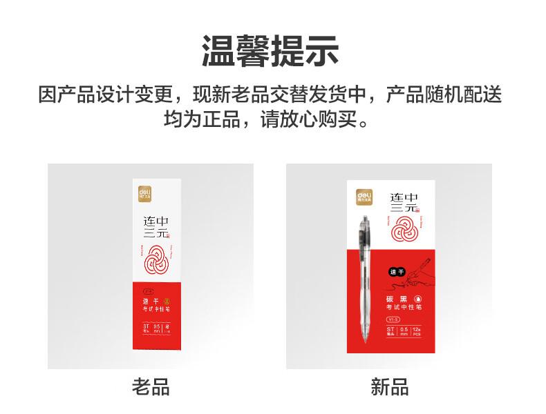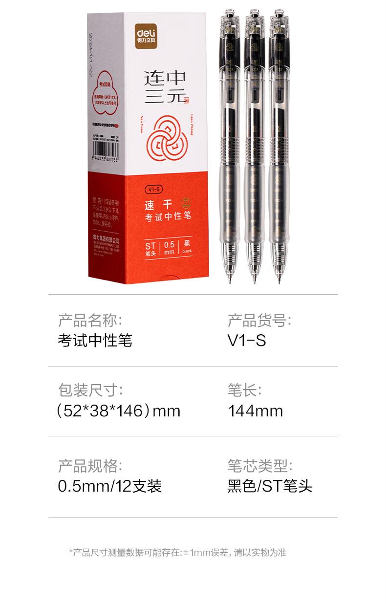 商品标题:得力V1-S速干按动考试中性笔0.5mmST头(黑)(支)