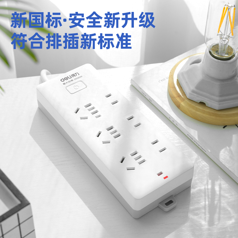 得力18169-05插座 3+3总控 5米 白色(只)