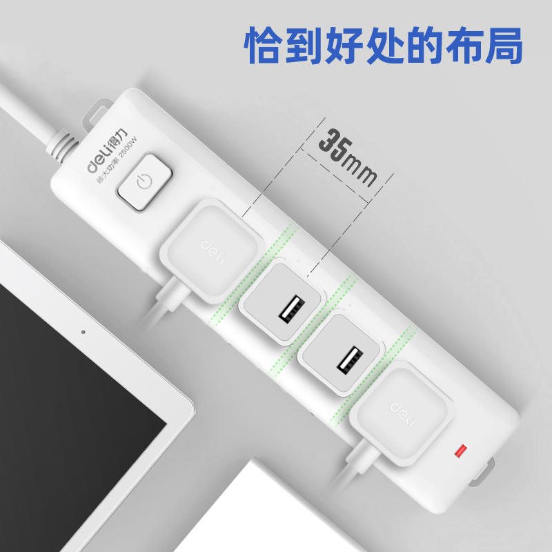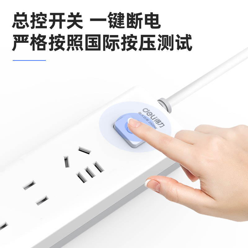 得力18163(1.8)插座 2+2总控 1.8米 白色(个)